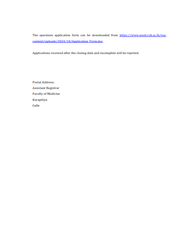 Vacancies in the Faculty of Medicine, University of Ruhuna Post: Technical Officer (ICT) – Grade III (On Contract Basis) February 21, 2025